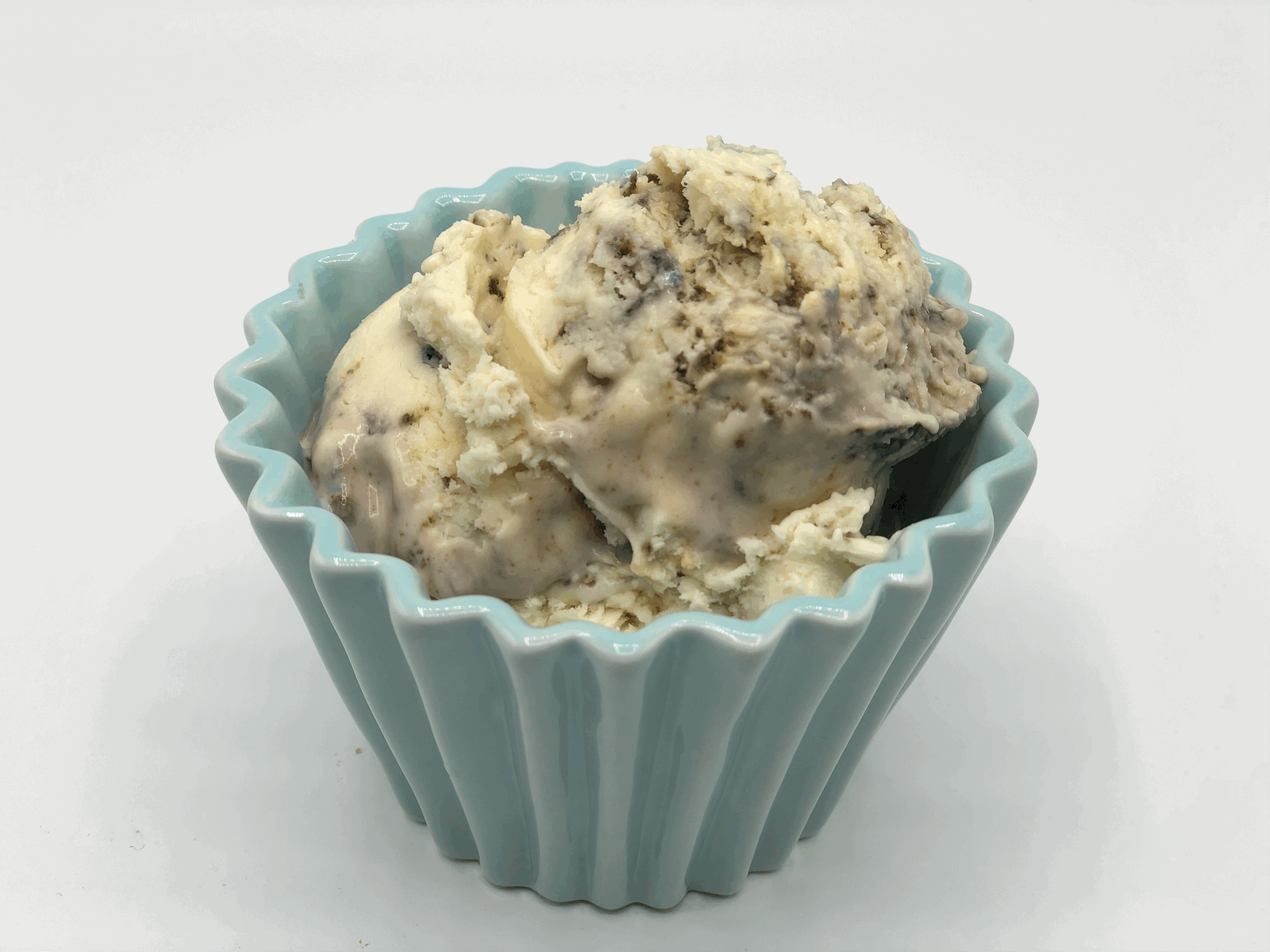 If you would like to add anything to your ice cream like crushed cookies, do this once the mixture has reached stiff peaks and fold them in with a spatula, careful to not deflate the ice cream.