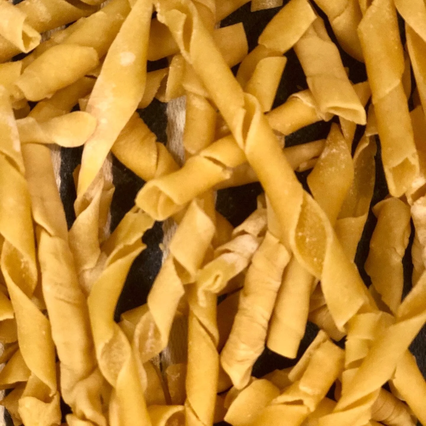 Using the pasta dough we have listed on our site, you can make a lot of different shapes. Ideally you form pasta to accompany the type of sauce you are making. A fusilli is good with a marinara sauce, as the spirals get pieces of that sauce caught in the pasta. Using just a metal dowel that was purchased and cut at Home Depot is all you need to make this shape. It is time consuming, but really rewarding.